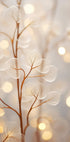 Delikatne i spokojne zbliżenie przezroczystych liści delikatnie świecących na marzycielskim tle bokeh. Drobne detale i pastelowe kolory tworzą eteryczną i uspokajającą atmosferę, dzięki czemu ta minimalistyczna grafika inspirowana naturą idealnie nadaje się do nowoczesnych i eleganckich wnętrz.
