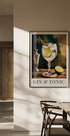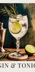 Eleganckie dzieło sztuki związane z ginem i tonikiem ze szklanką do ginu wypełnioną kostkami lodu, kawałkiem limonki i gałązką rozmarynu. Idealny dla entuzjastów koktajli, dekoracji barowych lub kolekcji dzieł sztuki o tematyce drinków. Podnieś poziom swojego domowego baru dzięki temu wyrafinowanemu elementowi, który łączy w sobie styl i świeżość.
