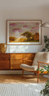 Surrealistyczne i pełne humoru dzieło sztuki, które łączy klasyczne malarstwo pejzażowe z absurdem pop-artu — gigantyczne różowe pączki unoszą się po niebie jak UFO, gdzie promień światła wsysa ludzką postać. Dowcipne połączenie sielskiego krajobrazu i nowoczesnej parodii, idealne dla miłośników wystroju wnętrz i sztuki z poczuciem wyobraźni.