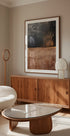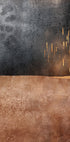 Nowoczesna abstrakcyjna grafika z ziemistymi odcieniami brązu, pomarańczy i szarości, połączona z rustykalną teksturowaną powierzchnią. Złote pionowe kreski dodają głębi i kontrastu, tworząc ponadczasowy wyraz. Idealny do wnętrz minimalistycznych, rustykalnych lub nowoczesnych, które pragną ciepła i wyrafinowania.