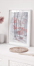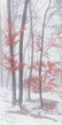 Cichy leśny krajobraz, gdzie ostatnie czerwone jesienne liście lśnią na cienkiej warstwie świeżego śniegu. Ciemne pnie znikają we mgle, tworząc głębię i spokój, podczas gdy chłód osiada niczym zasłona nad poszyciem lasu. Jesienny śnieg Alesa Kriveca w poetyckiej prostocie oddaje granicę między jesienią i zimą. Spokojny, mglisty dzień w głębokiej ciszy lasu.