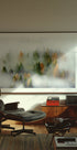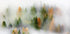 Marzycielski widok z lotu ptaka na mglisty jesienny las, gdzie kolorowe korony drzew w kolorze zielonym, pomarańczowym i złotym przebijają się przez warstwy mgły. Delikatna mgła tworzy magiczną, niemal surrealistyczną atmosferę, która oddaje ciche, zmieniające się piękno natury. Idealny do dodania kojącej i poetyckiej atmosfery do każdego pomieszczenia.