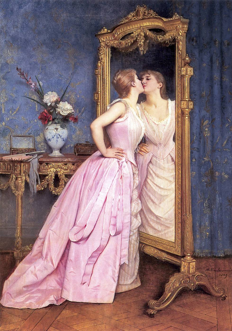 Plakat „Kobieta patrząca w lustro” ukazuje moment introspekcji i elegancji. Przedstawiając kobietę patrzącą w lustro, dzieło to oferuje kontemplacyjny obraz autorefleksji i wdzięku. Dzięki wyrafinowanej estetyce i urokowi vintage, plakat ten doda odrobinę wyrafinowania każdej przestrzeni i będzie idealnym dodatkiem zarówno do nowoczesnych, jak i klasycznych wnętrz. Idealny dla miłośników sztuki i tych, którzy cenią połączenie klasycznego piękna i sztuki introspekcyjnej.