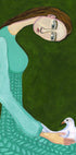 Plakat Kobieta siedząca z białą gołębicą-ptakiem