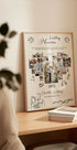 Romantyczny i minimalistyczny kolaż ślubny, który gromadzi Twoje najpiękniejsze chwile w przejrzystym układzie przypominającym galerię. Miękkie, neutralne tło, elegancka typografia i ręcznie rysowane ikony ślubne nadają ponadczasowy wygląd. Spersonalizowane imionami, datą i krótkim tekstem - idealne jako prezent ślubny, niespodzianka z okazji rocznicy lub miłe wspomnienie dla domu.