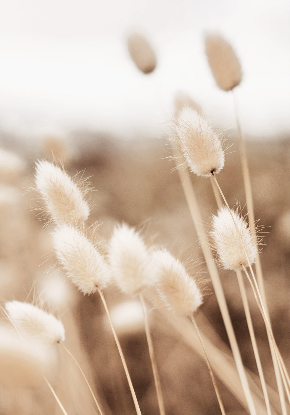 Plakat „Lagurus” przedstawia subtelną, marzycielską fotografię eleganckiego lagurusu jajowatego (Lagurus ovatus) kołyszącego się delikatnie na wietrze. Ciepłe odcienie beżu i sepii tworzą „uspokajającą i naturalną atmosferę” w każdym pomieszczeniu. Rozmyte tło podkreśla minimalistyczny styl, dzięki czemu plakat idealnie pasuje do „skandynawskich, bohemskich lub nowoczesnych aranżacji inspirowanych naturą”. Idealny prezent dla miłośników natury i osób ceniących proste, eleganckie dekoracje.