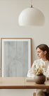 Minimalistyczny abstrakcyjny plakat z białymi zakrzywionymi liniami odzwierciedlonymi w symetrii na miękkim szarym tle z teksturą. Zainspirowana nowoczesną estetyką z połowy stulecia i monochromatyczną paletą, grafika łączy w sobie równowagę i prostotę, idealną do współczesnych wnętrz i przestrzeni inspirowanych stylem skandynawskim.