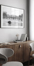 Magiczny pejzaż miejski Magere Brug w Amsterdamie w interpretacji Corné Akkersa. Słynny most zwodzony rozciąga się nad Amstel, otoczony domami nad kanałem, drzewami i cichymi łodziami. Monochromatyczne linie i miękkie cienie podkreślają odbicia w wodzie i tworzą spokojną, ponadczasową atmosferę w sercu miasta. Idealny dla miłośników miejskiej poezji i nordyckiego minimalizmu.