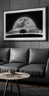 Ta surrealistyczna czarno-biała grafika przedstawia samotne drzewo w świecącym księżycu w pełni, z ptakami szybującymi nad sennym nocnym niebem. Chmury dryfują po świetlistej scenie, łącząc fantazję i naturę w uderzającej kompozycji, która oddaje tajemnicę, cud i ponadczasową elegancję.