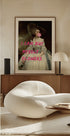 Ta grafika unowocześnia klasyczny portret z pogrubionym tekstem „Mogę kupić sobie kwiaty” i przedstawia kobietę dmuchającą gumę. Łączy w sobie klasyczną elegancję z nowoczesnymi motywami niezależności i siły, tworząc niepowtarzalną ekspresję wizualną, która łączy historię sztuki i popkulturę.