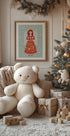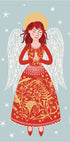 Eteryczny rudowłosy anioł autorstwa artysty Nica Squirrella stoi w cichej modlitwie pod usianym gwiazdami nocnym niebem, z aureolą świecącą i rozpostartymi miękkimi skrzydłami. Karmazynowa sukienka w stylu ludowym rozkwita motywami kwiatowymi, otoczona urokiem książki z baśniami w stylu vintage i migoczącymi gwiazdami – wnosząc ciszę, nadzieję i świąteczny cud do każdej przestrzeni.