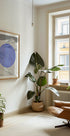 Blue Echoes autorstwa Athene Fritsch łączy chłodny minimalizm z poezją graficzną: czarno-biała sylwetka góry przełamana jest koncentrycznymi, ciemnoniebieskimi okręgami, które wysyłają wizualne echa przez mroźny krajobraz. Nowoczesne, geometryczne zestawienie ze spokojną energią, ostrym kontrastem i zimową elegancją. Idealny jako centralny punkt w salonie lub w biurze.