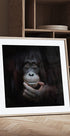 Intensywne zbliżenie uśmiechniętego, zamyślonego orangutana, uchwycone przy słabym, nastrojowym oświetleniu, które podkreśla fakturę futra i głębokie, ludzkie oczy. Fotografowany przez niemiecką fotografkę Antje Wenner-Braun w zoo w Rostocku obiekt zachęca do cichej refleksji i ciepłego, empatycznego spokoju w pomieszczeniu. Idealnie sprawdzi się w salonie, biurze czy przestrzeni kreatywnej.