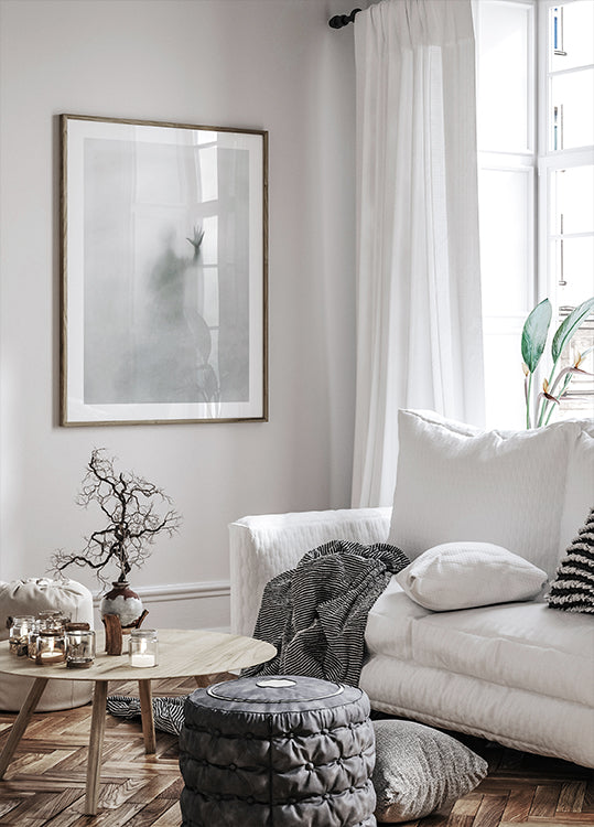 Rozmyty obraz postaci ludzkiej z dłonią przyciśniętą do mglistej powierzchni. Ten sugestywny i oniryczny motyw przywołuje uczucia samotności, napięcia i niepewności – idealny do nowoczesnych, odważnych wnętrz.