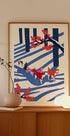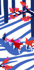 Sugestywna ilustracja gwaszu autorstwa Julie Lesouef: podekscytowane wiadro husky leci po lśniącym śnieżnym krajobrazie, podczas gdy sanki przecinają tory między ciemnymi jodłami. Niebo jaśnieje odcieniami błękitu, różu i pomarańczy, a w powietrzu drżą zimne dreszcze. Zimowa opowieść pełna szybkości, przygód i nordyckiej poezji. Idealny na zimowe sny.