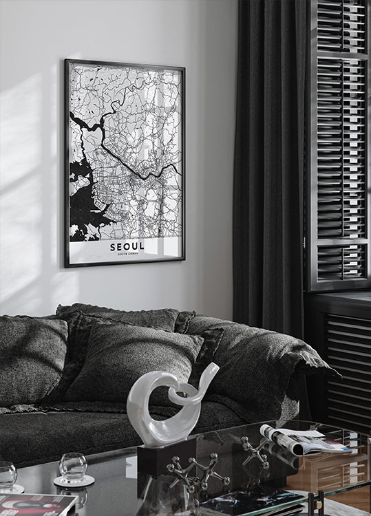 Plakat Seoul autorstwa StudioSix oddaje puls miasta w stylowym, graficznym motywie mapy. Wyraźne linie i harmonijne proporcje podkreślają struktury i rytm metropolii, od gęstych dzielnic po otwarte przestrzenie miejskie. Wyrafinowany element przyciągający wzrok, który wprowadza do wnętrz metropolitalną atmosferę i koreańską elegancję. Z minimalistycznym wyrazem.