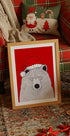 Plakat Świętego Mikołaja z czerwonym niedźwiedziem