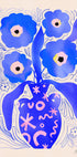 Odważny i zabawny hołd dla Matisse'a, z żywym wazonem wypełnionym efektownymi niebieskimi kwiatami na jasnym tle. Projekt łączy wzory graficzne z elementami kwiatowymi i tworzy żywą i nowoczesną martwą naturę, idealną do współczesnych wnętrz.