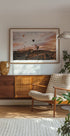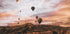 Zapierający dech w piersiach krajobraz Kapadocji o zmierzchu z balonami na ogrzane powietrze szybującymi po niebie. Ciepłe kolory pustyni i dramatyczne chmury dają poczucie wolności i przygody, idealne do dekoracji ściennych inspirowanych podróżami.