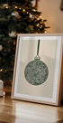 Plakat z bombkami bożonarodzeniowymi w kolorze oliwkowym