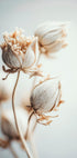 Miękkie i spokojne zbliżenie suszonych kwiatów w kremowych odcieniach beżu. Dzięki eleganckiemu minimalizmowi i spokojnej estetyce, to dzieło sztuki przekazuje poczucie bezruchu i wyrafinowanego piękna, idealne do nowoczesnych wnętrz.