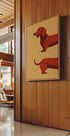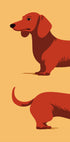 Zabawna, minimalistyczna ilustracja jamnika, humorystycznie pokazana w dwóch oddzielnych częściach z długim ciałem rozciągniętym w całej kompozycji. To nowoczesne i charakterystyczne dzieło sztuki oddaje urok ukochanego „psa kiełbaskowego” i jest idealne dla miłośników psów i nowoczesnych wnętrz.