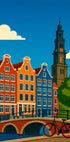 Wyobraź sobie Amsterdam dzięki tej nasyconej kolorami ilustracji przedstawiającej rower nad cichym kanałem, w otoczeniu drzew i charakterystycznych domów ze szczytami. Smugi słońca odbijają się w wodzie, a styl podróżowania retro spotyka się z nowoczesnym minimalizmem. Sugestywne dzieło Taudalpoi, idealne dla miłośników miast. Hołd dla tęsknoty za wędrówką, nostalgii i nordyckiej poezji kolorowej.
