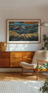 Zapierający dech w piersiach widok z lotu ptaka na pustynny krajobraz Kalifornii, ukazujący artystyczne strumienie natury i delty nad wydmami. Skomplikowane, przypominające żyły wzory w kolorze niebieskim i złotym tworzą abstrakcyjne arcydzieło, w którym ziemia i woda łączą się w harmonii. Uderzający fotograficzny element sztuki ściennej do nowoczesnych wnętrz.