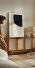 - Zamontowany na drewnianej ramie o grubości ok. 4 cm