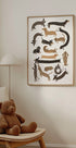 Urocza i zabawna ilustracja jamników w różnych pozycjach – rozciągających się, biegających i relaksujących. Ciepłe odcienie ziemi i ręcznie rysowany styl sprawiają, że ta grafika jest idealna dla miłośników psów, pokojów dziecięcych lub każdego, kto kocha zabawę i przyjazną grafikę ścienną.