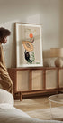 Nowoczesna abstrakcyjna ilustracja owoców tropikalnych, takich jak papaja, figi i cytrusy, elegancko zrównoważona stylizowaną dłonią. Dzięki ziemistym odcieniom i efektownym konturom grafika celebruje świeżość, naturę i żywe piękno codziennego życia. Idealny element do kuchni i nowoczesnych wnętrz.