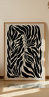 Odważny i elegancki plakat z abstrakcyjnymi sylwetkami czarnych liści na beżowym tle. Ta minimalistyczna grafika botaniczna łączy organiczne kształty z mocnymi kontrastami, idealna do nowoczesnych i współczesnych wnętrz.