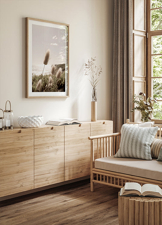 Plakat przedstawiający miękką trawę w górskim krajobrazie, idealny do dodania spokoju i naturalnego piękna do każdego pomieszczenia.