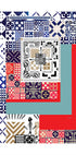 Żywy, inspirowany portugalią abstrakcyjny wzór, w którym nawiązania do azulejo, paski i kształty graficzne przeplatają się w dynamicznych rytmach odcieni niebieskiego, czerwonego, czarnego i złotego. Hołd dla portugalskiego idiomu, stworzony przez Awol Art Alex, który podnosi wszystko, od salonu po biuro, z graficznym spokojem i kolorowym ciepłem.