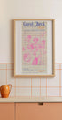 Zabawny i modny plakat przedstawiający kartę gościa restauracji w stylu vintage, na którą nałożono różowe szkice przedstawiające koktajle i kieliszki do opiekania. Połączenie typografii i grafiki tworzy odważny, nowoczesny projekt, idealny do kuchni, barów lub dla każdego, kto kocha dziwaczne nadruki.