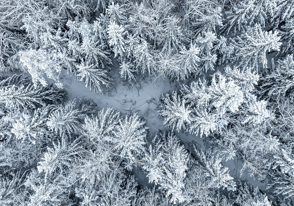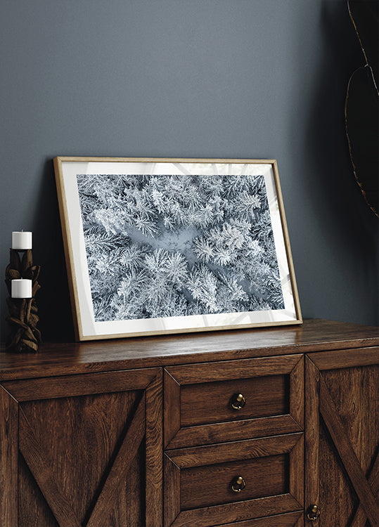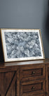 Cicha zimowa atmosfera rozwija się w stonowanym lesie, gdzie śnieg pokrywa miękkim kocem ciemne sylwetki drzew. Mgła i słabe odcienie błękitu tworzą spokój i głębię, a ślady światła prowadzą wzrok w krajobraz. Poetycka, nordycka atmosfera – stworzona przez Margusa Vilisoo. Idealny do zimowych ścian i wyciszenia w pomieszczeniu.