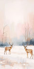 Dwa pełne wdzięku jelenie stoją nieruchomo w cichym zimowym gaju, w otoczeniu ośnieżonych drzew i stonowanych pasteli. Miękkie, mroźne powietrze i ślady na śniegu tworzą poetycki spokój, który zachęca do refleksji. Ohkimiko oddaje nordycką magię zimy w prostocie i elegancji – cichą chwilę spokoju natury. Idealnie nadaje się do salonu, sypialni czy przedpokoju.