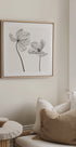 Poetyckie studium tego samego tulipana widzianego z przodu i z tyłu: dwa monochromatyczne zbliżenia, w których światło i cień podkreślają delikatną strukturę i eleganckie krzywizny płatków. Kompozycja jest minimalistyczna i wyważona, stanowi cichą opowieść botaniczną stworzoną przez fotografkę Lotte Grønkjær. Graficzny, jasny wyraz, który nadaje pomieszczeniu ponadczasowy spokój.