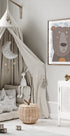 Uroczy niedźwiedź brunatny stoi pośrodku miękkiego, nordyckiego wszechświata, otoczony czystym wzorem szarych liści i odrobiną zimowego spokoju. Czyste kształty i ciepłe odcienie nadają zabawny, pewny siebie wyraz, idealny do pokojów dziecięcych i przytulnych zakątków. Ilustracja autorstwa artystki Carli Daly. Uroczy przyciągający wzrok, z delikatnym humorem i skandynawską prostotą.