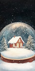 Træd ind i vintermagien: En klassisk snekugle med lille by, fyrretræer og et hyggeligt hus badet i varmt lys, fanget i dybe grønne og mørke nuancer. Snefnug danser i stille nat og vækker retro julestemning og nostalgi. Under glasset hvirvler sneen om graner og tage. Et stemningsfuldt motiv af Melloi Art Prints.