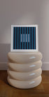 Square No14 af Amanda Mclaurin er en taktil undersøgelse af geometri: et markant kvadrat opbygget af vævede tråde og indpakkede fibre, krydset af striber og fine linjer. Nuancer i tone og tekstur giver et håndbroderet udtryk, der skaber rolig rytme og strukturel balance i moderne, minimalistiske rum.