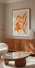 Stylizowany plakat pomarańczowy tulipan i liście