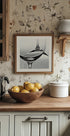 Dwa eleganckie kieliszki do wina w czerni i bieli tworzą graficzną martwą naturę, w której miękkie krzywizny i ostre linie odbijają się nawzajem. Jedna szklanka jest odwrócona do góry nogami, co tworzy napięcie, rytm i idealną symetrię. Minimalistyczna, ponadczasowa kompozycja do kuchni, baru czy salonu, dodająca spokoju i estetyki. Dyskretny napis na ścianie.