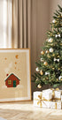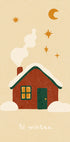 En stemningsfuld vinterillustration, der fanger øjeblikket lige før julenatten. Sneklædte hytter og røde tage lyser i måneskinnet, granerne glitrer, og stille spor i sneen antyder, at noget magisk er på vej. Et nostalgisk motiv i børnevenlig, vintage stil, der skaber ro, varme og forventning. Perfekt til julens hyggehjørner.