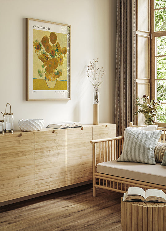 Klasyczne arcydzieło Vincenta van Gogha „Wazon ze słonecznikami” namalowane w 1888 roku. Ta kultowa grafika przedstawia żywy bukiet słoneczników w rustykalnym wazonie, podkreślając wyjątkowe pociągnięcia pędzlem i wiedzę Van Gogha w zakresie kolorów. Idealny dla miłośników sztuki oraz entuzjastów impresjonizmu i postimpresjonizmu. Ponadczasowy element, który ulepszy Twój dom lub kolekcję.