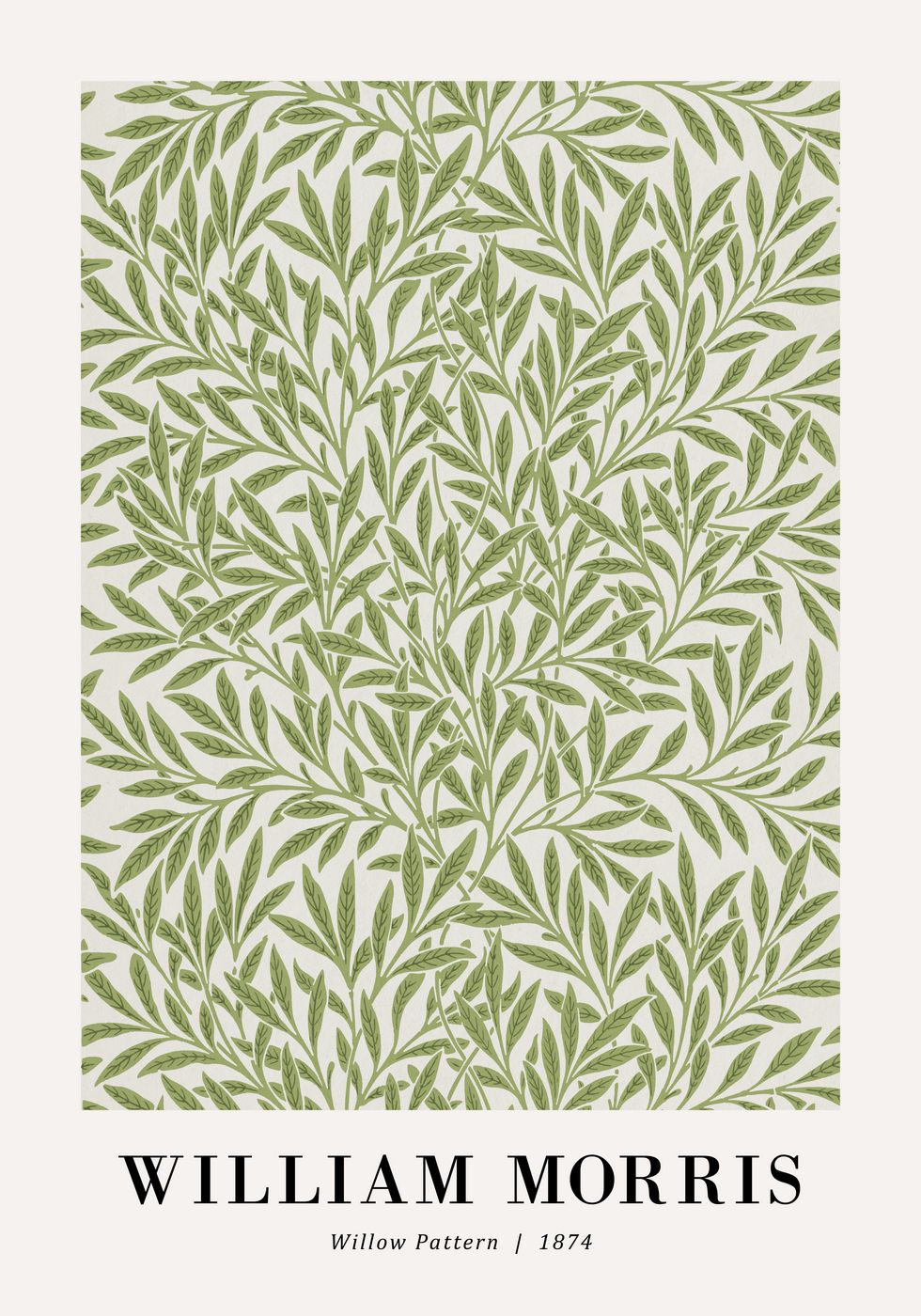 Ponadczasowy plakat botaniczny z kultowym *Wzorem Wierzby*, zaprojektowanym przez Williama Morrisa w 1874 roku. Delikatne zielone liście tworzą fascynujący, inspirowany naturą wzór, który doskonale oddaje styl ruchu *Arts and Crafts*. Idealny dla miłośników designu vintage, klasycznego rzemiosła i naturalnych wzorów.